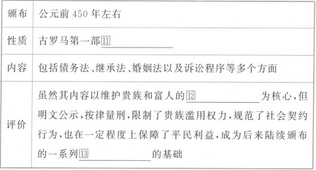⑪成文法 ⑫财产利益 ⑬公民法 ⑭编年史 ⑮凯撒