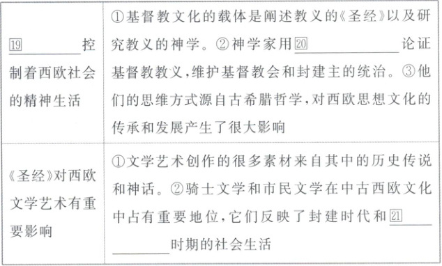 [导学任务] 阅读教材第二目(P23、P24)。思考:中古时期西欧的政治格局是怎样的?对中古西欧文化具有什么影响?中古西欧文化有什么特点?其主要成就有哪些?有何重要历史作用?