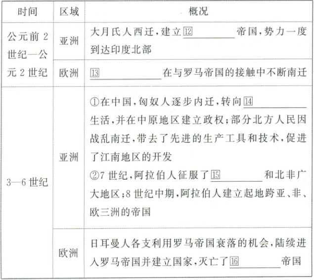 ⑫贵霜;⑬日耳曼人;⑭定居;⑮西亚;⑯西罗马