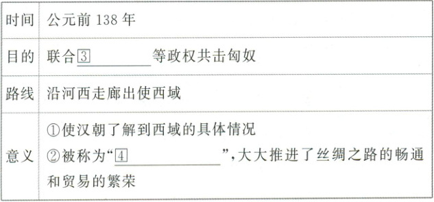 ①欧亚大陆 ②丝绸 ③大月氏 ④凿空 ⑤新疆