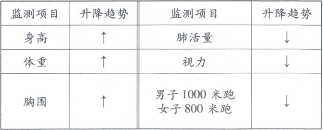 该市小学生身高、体重、胸围等身体形态指标上升,肺活量、视力、耐力跑等体能与健康指标下降。