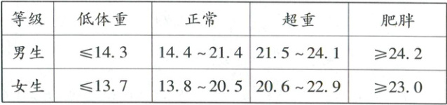 请你算一算,小兰的身体质量指数属于哪个等级?(6 分)