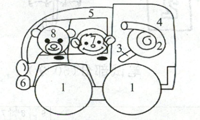 八、Read and colour. Wenwen的展示作品是小熊和小猴子开车去旅行,快来帮它们涂上漂亮的颜色吧!(8分)
