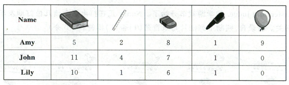 )3. Lily and Amy have three rulers in all(总共).任务二:选择合适的选项。(6分)