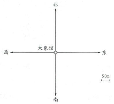 (1) 鳄鱼潭在大象馆的西偏南 40°方向 300m 处。(2 分)