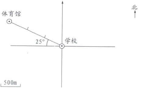 科技馆在学校东偏北$ 35^{\circ} $方向上,距离是2000m。请你在图上画出科技馆的位置。