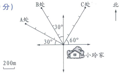 1. 观察右图,书店在小玲家的北偏西 30°方向 800m 处,书店应该在(