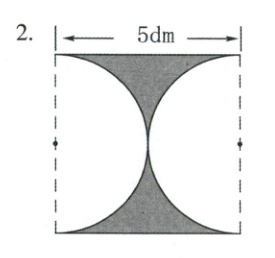 @@已知正方形的边长为5dm,那么图形中两个半圆可以组成一个直径为5dm的圆。根据圆的周长公式C = \pi d(其中C表示圆的周长,\pi取3.14,d表示圆的直径),可得这个圆的周长为3.14×5 = 15.7dm。正方形的两条边长长度为5×2 = 10dm。所以该图形的周长为15.7 + 10 = 25.7dm。