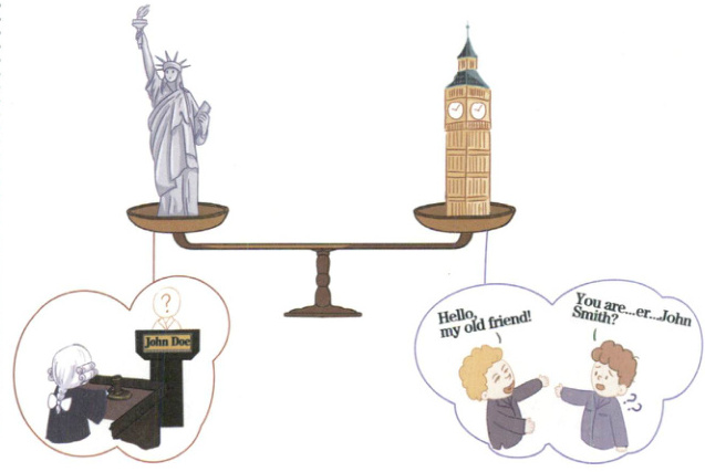 In US courts, people also use these names. This is to keep the person's identity (身份) a secret. People use the name so often that there was even a comedy film in 1941 called Meet John Doe.