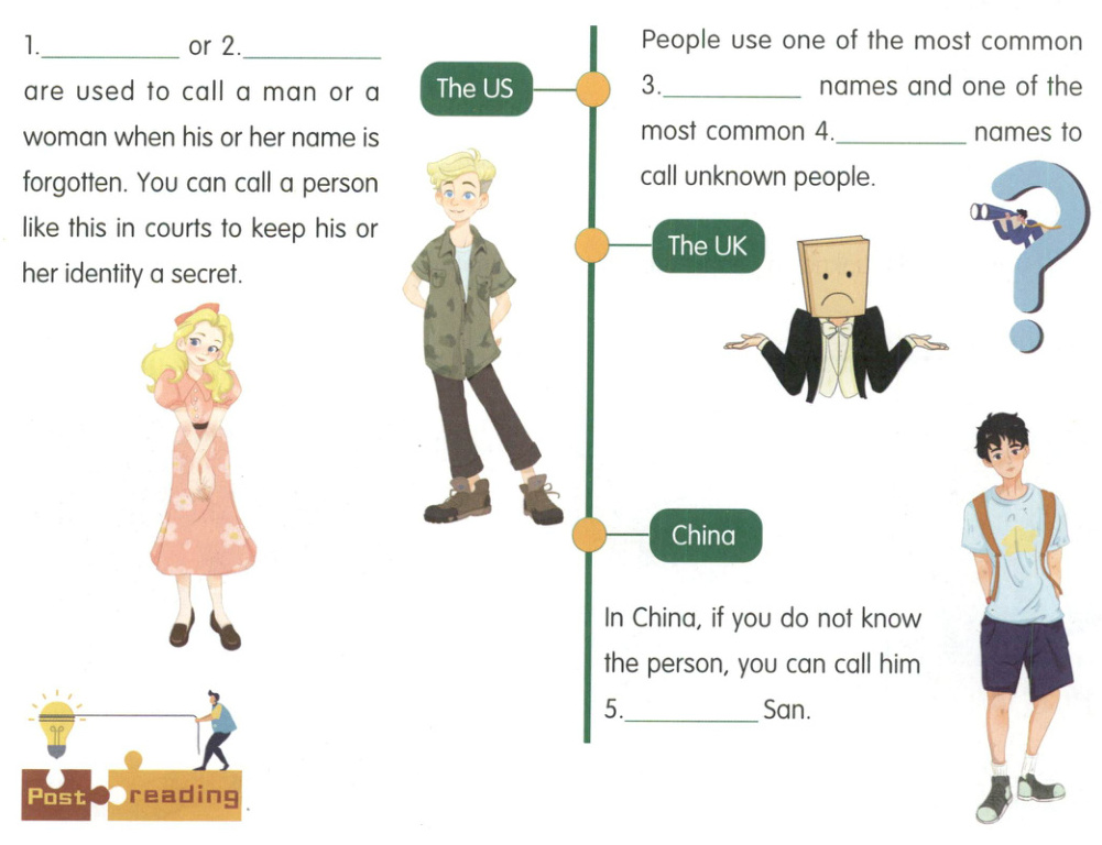 ) 1. In English, there are special names to replace unknown people's real names.(