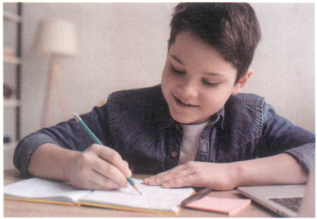 Then he goes to school. The teacher asks the class to write a composition. "It should be about your family," says the teacher.
