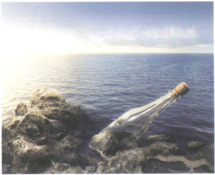 Three men are on an island and find a bottle there.One of them picks it up and opens it. A genie (精灵) comes out.