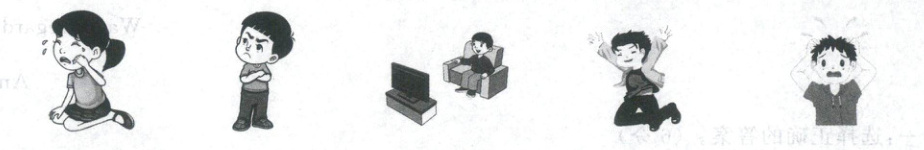 一、Listen and number.同学们在玩“表情包”游戏。听录音,根据所听到的内容给下列图片排序。(5分)