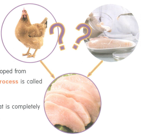 F. Unlike normal chicken meat, lab-grown meat isn't created by raising and killing chickens.