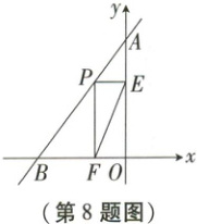 8. 如图,直线 $AB:y = 2x + 5$ 与 $y$ 轴交于点 $A$,与 $x$ 轴交于点 $B$,点 $P$ 为线段 $AB$ 上的一个动点,作 $PE \perp y$ 轴于点 $E$,$PF \perp x$ 轴于点 $F$,连接 $EF$,则线段 $EF$ 长的最小值为