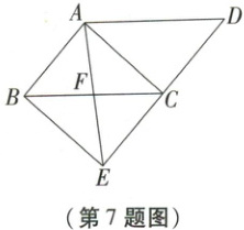 7. 如图,在 $□ ABCD$ 中,$AD = 3$,$CD = 2$. 连接 $AC$,过点 $B$ 作 $BE // AC$,交 $DC$ 的延长线于点 $E$,连接 $AE$,交 $BC$ 于点 $F$. 若 $\angle AFC = 2\angle D$,则四边形 $ABEC$ 的面积为