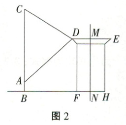 5. 某数学兴趣小组在迎宾广场测量旅游服务中心(如图1)的高度,图2为测量示意图,直线 $MN$ 为服务中心的对称轴,在地面的点 $B$ 处架设测角仪,测得旅游服务中心的最高点 $D$ 的仰角为 $45^{\circ}$,利用无人机在点 $B$ 的正上方 $57.8$ m 的点 $C$ 处测得点 $D$ 的俯角为 $32^{\circ}$,测角仪的高度 $AB = 1.6$ m,$FH = 17.2$ m,$DE = 19.8$ m. 求旅游服务中心的高度为多少米.(结果精确到 $0.1$ m. 参考数据:$\sin 32^{\circ} \approx 0.530$,$\cos 32^{\circ} \approx 0.848$,$\tan 32^{\circ} \approx 0.625$,$\sqrt{2} \approx 1.414$)