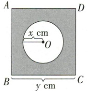 9. 如图,正方形 $ ABCD $ 和 $ \odot O $ 的周长之和为 $ 20cm $,设圆的半径为 $ xcm $,正方形的边长为 $ ycm $,阴影部分的面积为 $ Scm^{2} $。当 $ x $ 在一定范围内变化时,$ y $ 和 $ S $ 都随 $ x $ 的变化而变化,则 $ y $ 与 $ x $,$ S $ 与 $ x $ 满足的函数关系分别是(