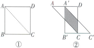 5. 如图①,②,将边长为 $2cm$ 的正方形 $ABCD$ 沿其对角线 $AC$ 剪开,再把 $\triangle ABC$ 沿着 $AD$ 方向平移,得到 $\triangle A'B'C'$。若两个三角形重叠部分的面积为 $1cm^{2}$,则 $\triangle ABC$ 移动的距离 $AA'$ 等于