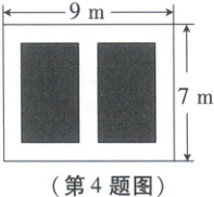 4. 九(1)班分到如图所示的一块长 9 m、宽 7 m 的矩形空地,计划在其中两块完全相同的矩形空地上(阴影部分)种植蔬菜,它们的面积之和为 30 $m^{2}$。若人行道的宽度都为 $x\ m$,则可以列出关于 $x$ 的方程(