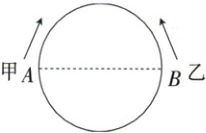 6. 某校为培育青少年科技创新能力,举办了动漫制作活动。小明设计了点做圆周运动的一个雏形,如图所示,甲、乙两点分别从直径的两端点 $A$,$B$ 沿顺时针、逆时针的方向同时做圆周运动,甲的路程 $l(cm)$ 与运动时间 $t(s)$ 满足关系 $l = t^{2}+3t(t\geq0)$,乙以 8 cm/s 的速度匀速运动,半圆的长度为 42 cm。
