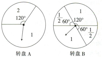 (1) 只转动转盘 $ B $,则转出 $ \frac{1}{2} $ 的概率为 ____ 。
