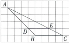 4. 如图,已知方格纸中每个小方格的边长均为$1$,试确定$\frac{AD}{AB},\frac{AE}{AC},\frac{DE}{BC}$之间的关系,并计算$\triangle ADE与\triangle ABC$的周长之比.
