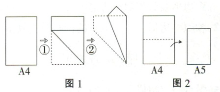 11. 如图 1,将 A4 纸折叠两次,发现第一次的折痕与 A4 纸较长的边重合;如图 2,将一张 A4 纸对折,使其较长的边一分为二,沿折痕剪开,可得两张 A5 纸.