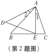2. 如图,已知$∠1 = ∠2$,那么添加下列哪个条件后,仍