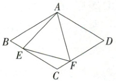 9. 如图,在菱形 ABCD 中,AB = 8,∠BAD = 120°,△AEF 为等边三角形,点 E,F 分别在菱形的边 BC,CD 上移动,且 E,F 不与 B,C,D 重合.