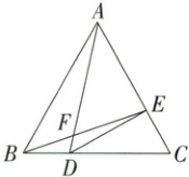 6. 如图,$ \triangle ABC $ 是等边三角形,点 $ D $,$ E $ 分别在 $ BC $,$ AC $ 边上,且 $ BD = \frac{1}{3}BC $,$ CE = \frac{1}{3}AC $,$ BE $,$ AD $ 相交于点 $ F $,连接 $ DE $。有下列结论:① $ \angle AFE = 60^{\circ} $;② $ \frac{EF}{AF} = \frac{DF}{BF} $;③ $ CE^{2} = DF \cdot DA $;④ $ AF \cdot BE = AE \cdot AC $。其中正确的结论有(