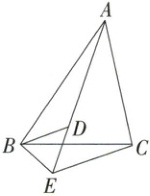 7. 如图,$ D $ 为 $ \triangle ABC $ 内一点,$ E $ 为 $ \triangle ABC $ 外一点,且 $ \angle ABC = \angle DBE $,$ \angle BAD = \angle BCE $。