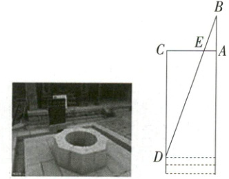 4. 《九章算术》中记载了一种测量古井水面以上部分深度的方法.如图所示,在井口A处立一根垂直于井口的木杆AB,从木杆的顶端B观察井水水岸D.视线BD与井口的直径AC交于点E,如果测得AB= 1m.AC= 1.6m,AE= 0.4m,那么CD为(