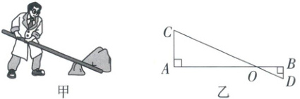 3. (2025·四川内江)阿基米德曾说过:“给我一个支点,我能撬动整个地球.”这句话生动体现了杠杆原理:通过调整支点位置和力臂长度,用较小的力就能撬动重物.这一原理在生活中随处可见.如图甲,这是用杠杆撬石头的示意图,当用力压杠杆时,另一端就会撬动石头.如图乙所示,动力臂OA= 150cm,阻力臂OB= 50cm,BD= 20cm,则AC的长度是(
