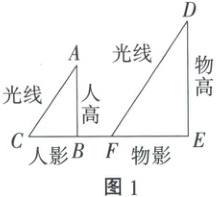 1. 测量物体高度的方法和原理(一):如图1,利用阳光下的影子.因为光线AC