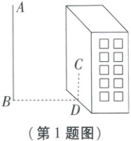 1. 如图,在某一时刻测得1m长的竹竿竖直放置时影长为1.2m,在同一时刻旗杆AB的影子不全落在水平地面上,有一部分落在了楼房的墙上.测得落在地面上的影长BD= 9.6m,留在墙上的影长CD= 2m,则旗杆AB的高度是(