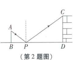 2. 某数学兴趣小组设计的用手电筒来测量某古城墙高度的示意图如图所示,在点P处放一水平的平面镜,光线从点A出发经平面镜反射后刚好射到古城墙CD的顶端C处.已知AB⊥BD,CD⊥BD,且测得AB= 4m,BP= 6m,PD= 12m,那么该古城墙CD的高度是(