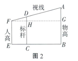 2. 测量物体高度的方法和原理(二):如图2,利用标杆.因为CD