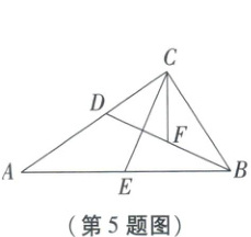 5. 如图,在 $ Rt \triangle ABC $ 中,$ \angle ACB = 90° $,$ D $ 是 $ AC $ 边上一点,$ \angle CBD = \angle A $,点 $ E $,$ F $ 分别是 $ AB $,$ BD $ 的中点. 若 $ AB = 5 $,$ AC = 4 $,则 $ CF:CE = $