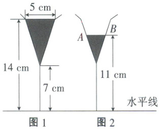 8. 图1是装了液体的高脚杯示意图(数据如图),用去一部分液体后如图2所示,此时液面 $ AB $ 的长为