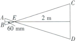 7. 下图是一个照相机成像的示意图. 如果底片 $ AB $ 宽 $ 40\ mm $,焦距是 $ 60\ mm $,那么所拍摄的 $ 2\ m $ 外的景物的宽 $ CD $ 为(