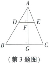 3. 如图,已知 $ \triangle ADE \backsim \triangle ABC $,相似比为 $ 1:3 $,则 $ AF:AG = (