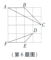 6. 如图,在正方形网格中,$ \triangle ABC \backsim \triangle DEF $,则它们的相似比是