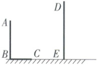 6. 如图,已知AB和DE是直立在地面上的两根立柱。某一时刻AB在阳光下的投影为BC。请你在图中画出此时DE在阳光下的投影。