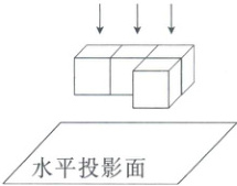 5. 由四个相同小立方体拼成的几何体如图所示。当光线由上到下垂直照射时,请画出该几何体在水平投影面上的正投影。