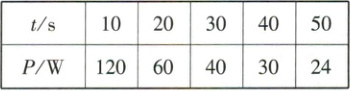 8. 某数学兴趣小组根据所学函数的特征,发现当做功一定时,功率$P$(单位:$W$)与做功的时间$t$(单位:$s$)存在反比例函数关系.下表是他们实验得到的几组数据: