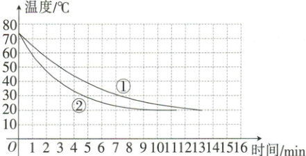 5. 小明对“保温杯的保温性能”进行实验,分别取①和②两种带有液晶显示的保温杯用于实验,分别往两保温杯中倒入质量和初始温度相同的热水,然后将它们置于冷藏箱中,根据实验数据作出水温随时间变化的图象,如图所示.下面说法错误的是(