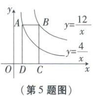 5. 如图,点$A在双曲线y= \frac{4}{x}$上,点$B在双曲线y= \frac{12}{x}$上,且$AB // x$轴,点$C$,$D在x$轴上.若四边形$ABCD$为长方形,则它的面积为