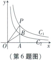 6. 如图,两个反比例函数$y= \frac{4}{x}和y= \frac{2}{x}在第一象限内的图象分别是C_1和C_2$,设点$P在C_1$上,$PA \perp x轴于点A$,交$C_2于点B$,则$\triangle POB$的面积为