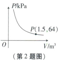 2. 某气球内充满了一定质量的气体,当温度不变时,气球内气体的气压 $ P(kPa) $ 是气体体积 $ V(m^3) $ 的反比例函数,其图象如图所示. 当气